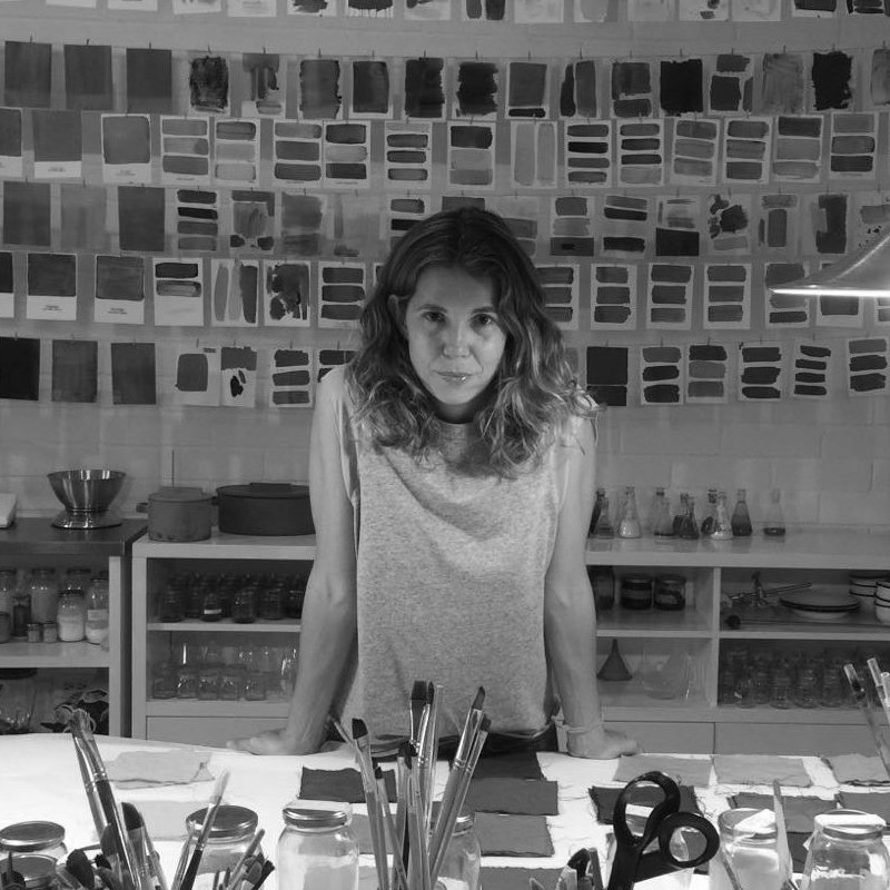 Artista colombiana nacida en Medellín, Colombia, en 1978. Adelantó estudios en el Fine Arts, The Art Institute of Boston, Estados Unidos, interesándose particularmente por la pintura y el color. Sin embargo, la desilusión con la escena artística finalmente la llevó a emprender una suerte de “trabajo social” en forma de talleres de tejido para las reclusas de una prisión de mujeres en Medellín. El producto derivado de estos talleres fue una gran cantidad de tejidos de fibras de fique que Mejía guardó durante años.